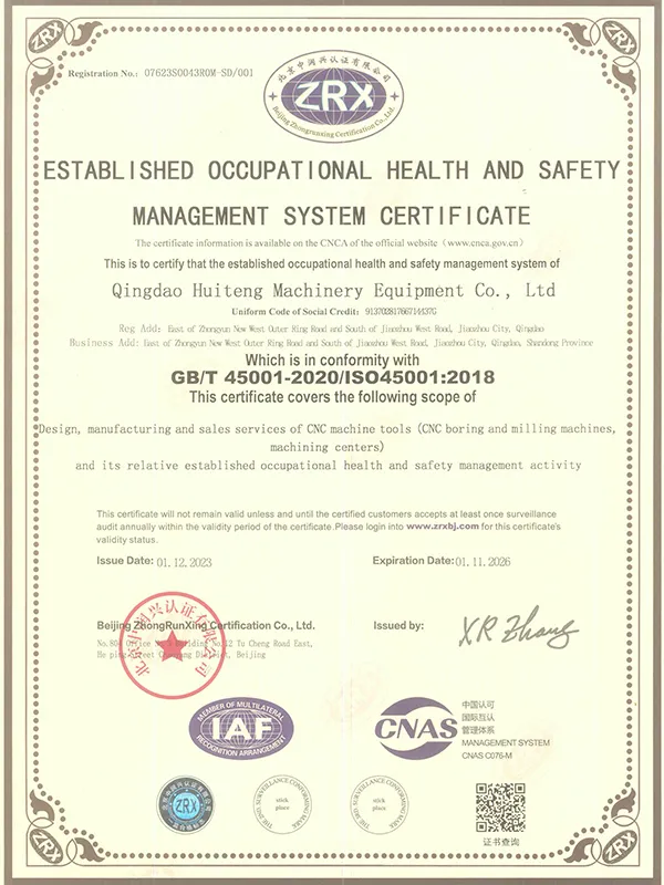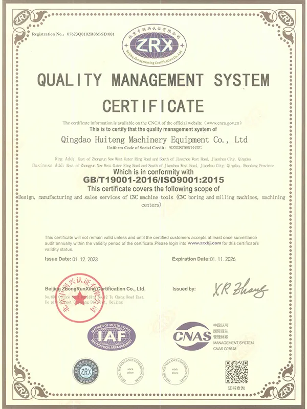 Полное название Qingdao Huiteng Machinery Equipment Co., Ltd., специализируется на производстве фрезерно-расточных станков с ЧПУ. Основанная в 2004 году, компания имеет зарегистрированный капитал 62 млн. юаней и 200 сотрудников. Мы располагаем производственным предприятием с площадью 90 000 кв. метров, которое полностью оснащено передовым оборудованием и технологиями для производства технологичных фрезерно-расточных станков с ЧПУ различного типа: напольные, с поперечно-движущимся столом, с подвижным столом, портальные.